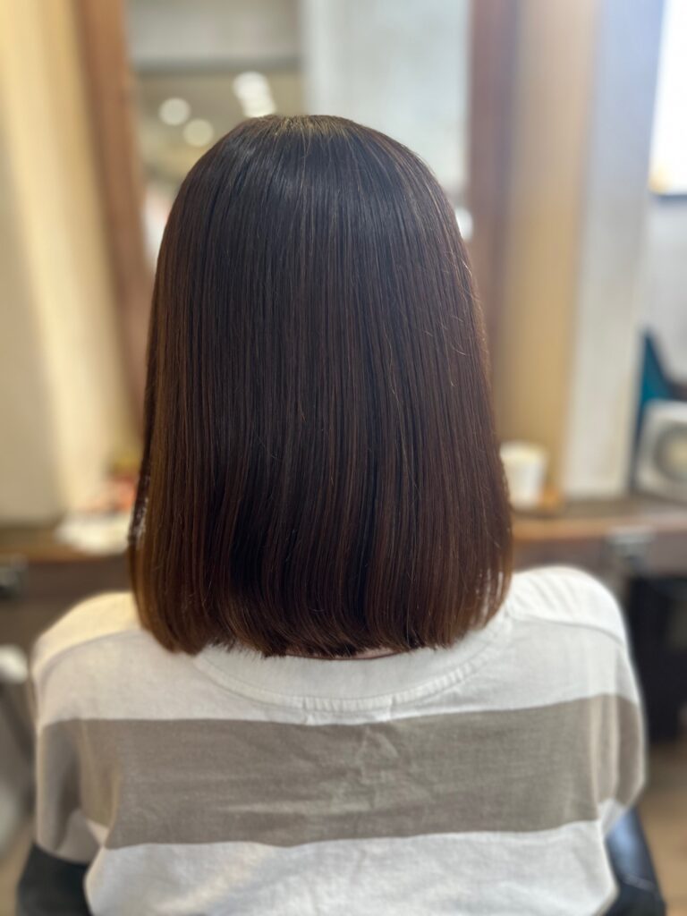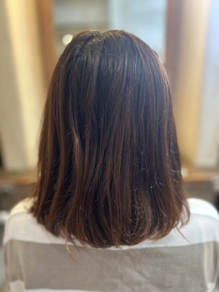 【美髪補正】クセを完全に伸ばすのではなく、まとまり・艶・柔らかさを重視し、自然な仕上がりに導きます