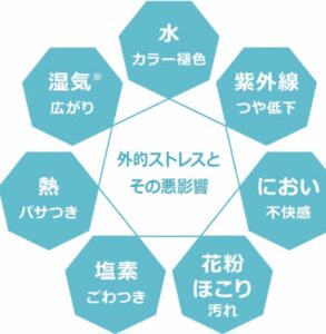 ドライヤー・アイロンの熱・紫外線・湿気による広がり・花粉やほこり・カラーの退色要因・摩擦ダメージ
